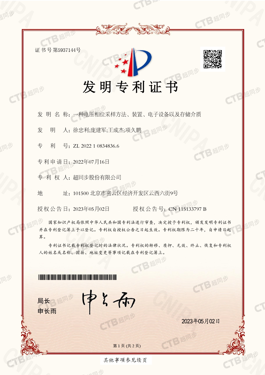 當前位置:首頁 > 榮譽資質 > 一種電壓相位采樣方法、裝置、電子設備以及存儲介質