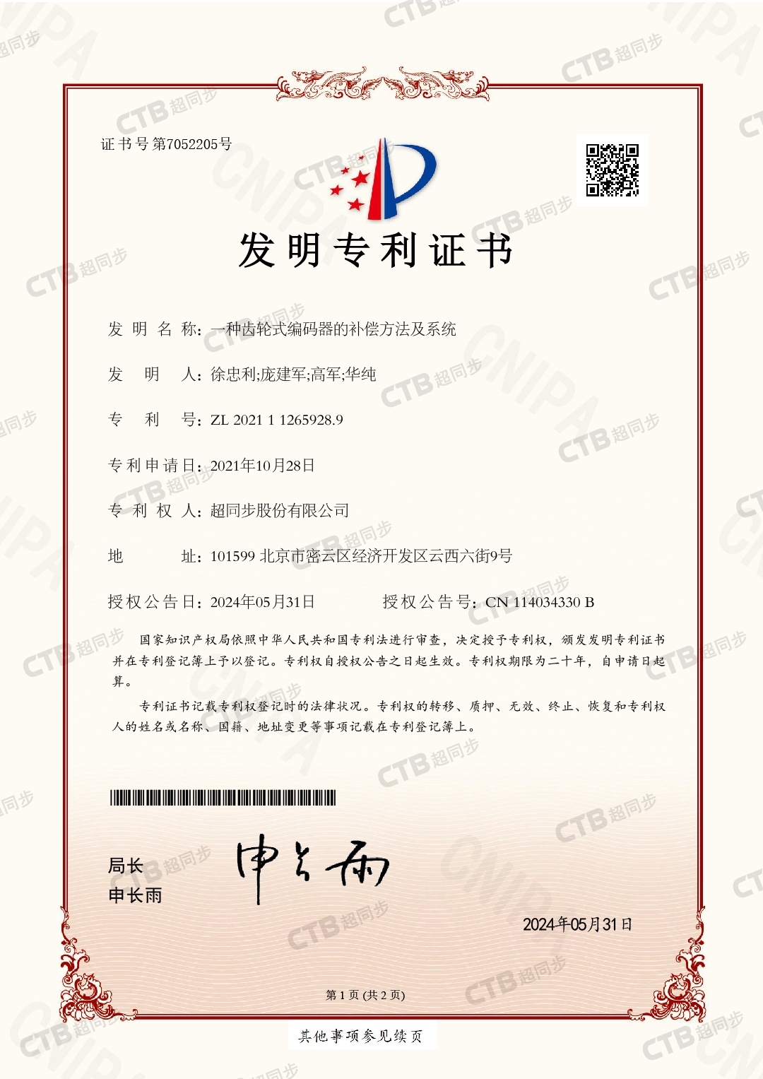 當前位置:首頁 > 榮譽資質 > 一種齒輪式編碼器的補償方法及系統